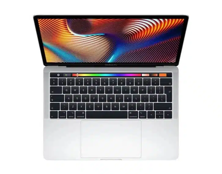 Topcase complet pour MacBook Pro 13″ A1989 (2018 à 2020), avec clavier AZERTY – Finition Gris Argent. Touch Bar incluse, sans bouton Touch ID. Plusieurs grades disponibles.