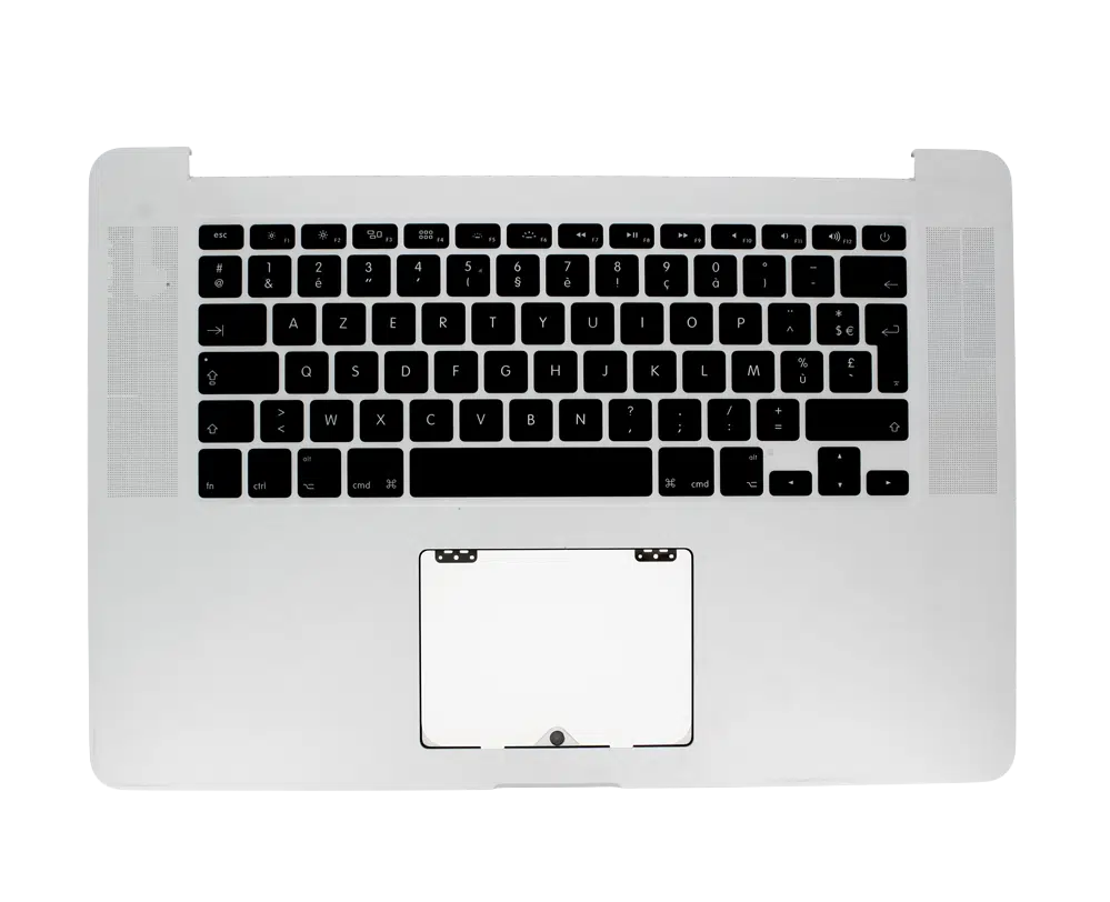 Ce topcase est destiné aux MacBook Pro 15” Retina A1398 (modèles de 2013 et 2014). Il comprend uniquement le châssis supérieur en aluminium avec le clavier AZERTY préinstallé. Le trackpad n’est pas inclus.