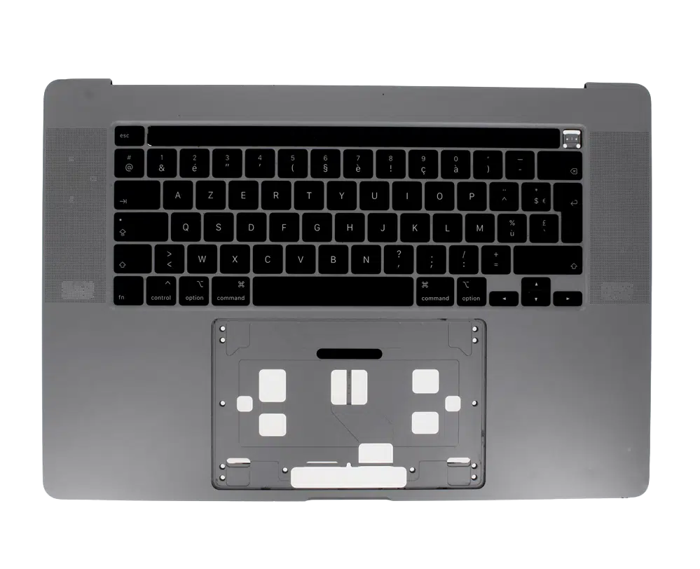 Remplacez le topcase de votre MacBook Pro 16” A2141 (2019) avec ce bloc complet comprenant la coque supérieure en aluminium Gris Sidéral, le clavier rétroéclairé et le trackpad d’origine Apple.